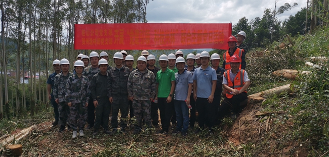 全体人员首先一起来到了贺州市八步区信都镇马塘村,观看了智能公司和木材公司工人在林地砍伐工作,木材公司总经理陈俊汕详细地为大家介绍当前机械采伐的进度和具体情况,其次现场开展机械采伐和营林生产经验的学习交流。