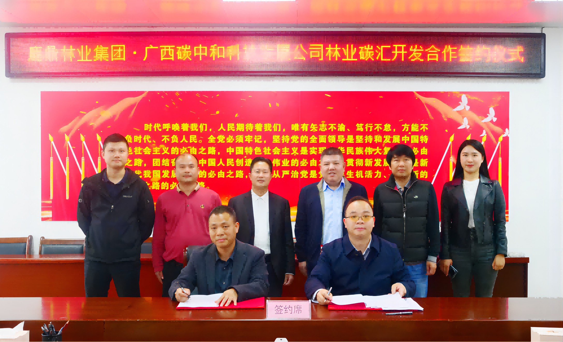 4月11日,广西碳中和科技发展有限公司与广西鹿鼎林业集团有限公司林业碳汇开发合作签约仪式在柳州市举行。