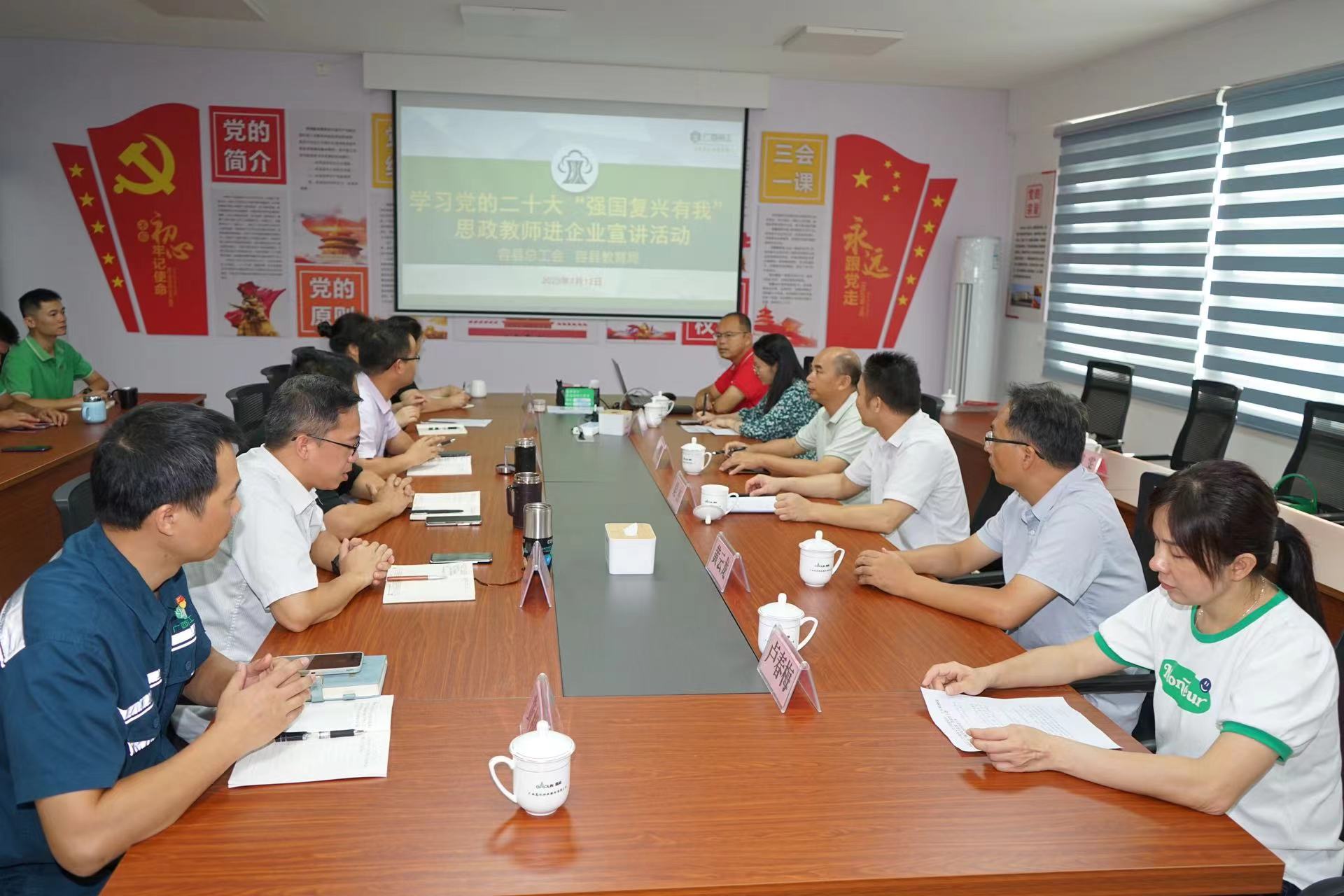 2023年7月12日上午,容县总工会、容县教育局一行到高林公司开展了学习党的二十大“强国复兴有我”思政教师进企业宣讲活动。高林公司13名党员参加了本次宣讲活动。