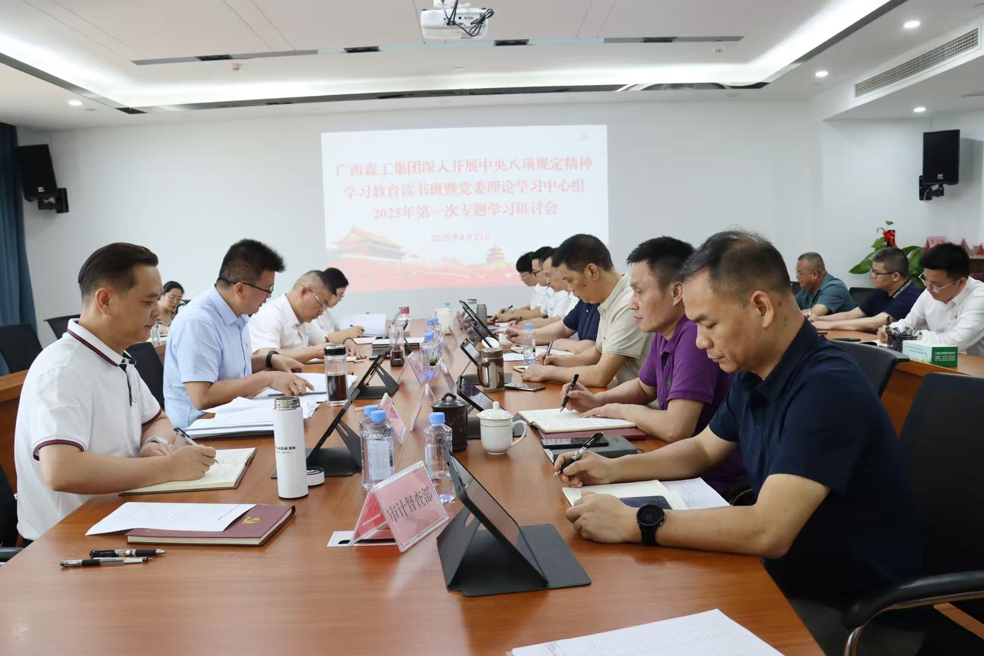 2025年4月22日,广西森工集团党委召开召开深入贯彻中央八项规定精神学习教育读书班暨党委理论学习中心组2025年第一次专题学习研讨会,集团党委书记、董事长李松海主持会议并讲话,强调要深入学习贯彻习近平总书记关于加强党的作风建设的重要论述,深刻认识开展学习教育的重大意义,坚持严的标准、严的举措一体推进学查改,以学习教育良好成效推动集团“扭亏脱困”和高质量发展。