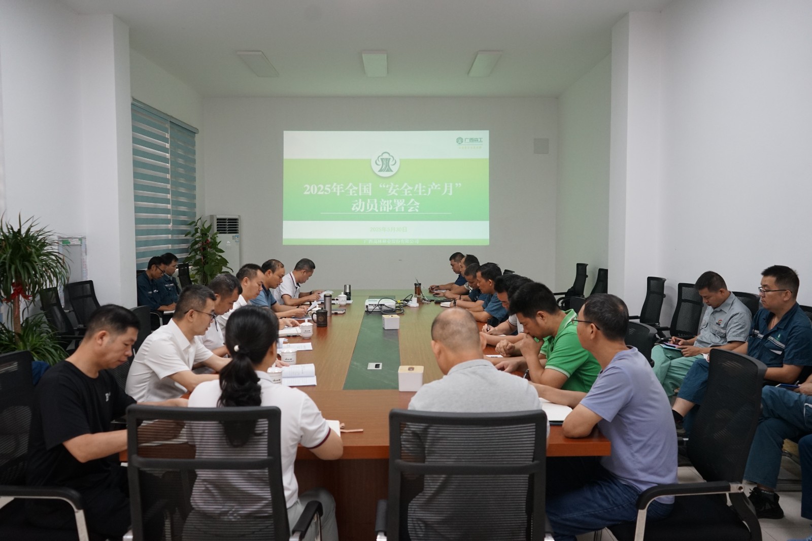 为深入贯彻习近平总书记关于安全生产的重要论述及指示批示精神,切实强化企业安全生产主体责任落实机制,系统提升风险隐患排查治理效能,全面增强全员安全防范意识与应急处置能力,确保'安全生产月'系列工作有序推进,桂润公司于5月30日上午组织召开2025年'安全生产月'动员部署会议暨活动启动仪式。