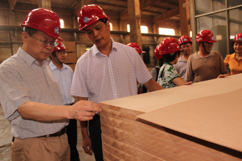 2012年6月,时任国家林业局计财司副司长孙建(左一)到南宁事业部视察